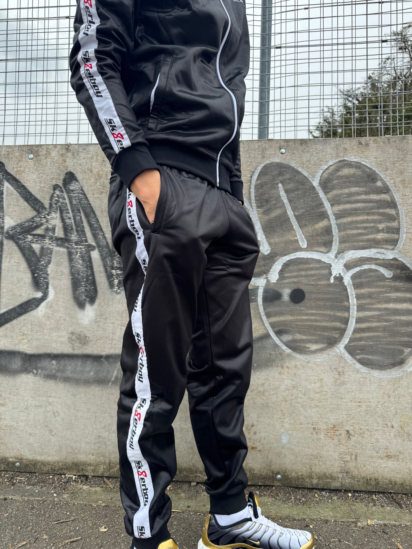 Die Bündchen an den unteren Beinabschlüssen passen sich weich an deine Fußknöchel an. Ideal auch zum einstecken in deine Socken! Beide seitlichen und die Gesäßtasche haben Reißverschlüsse. Hier kannst Du das Nötigste einstecken, wenn Du unterwegs bist. Seitlich an den Beinen ist ein breites Kontrastband mit dem Sk8erboy® Logo aufgenäht. Damit bist Du ein absoluter Hingucker auf der Straße, der nächsten Party, oder beim Cruising. Und weil er so bequem zu tragen ist, wirst Du auch zu Hause nichts anderes mehr tragen wollen!
